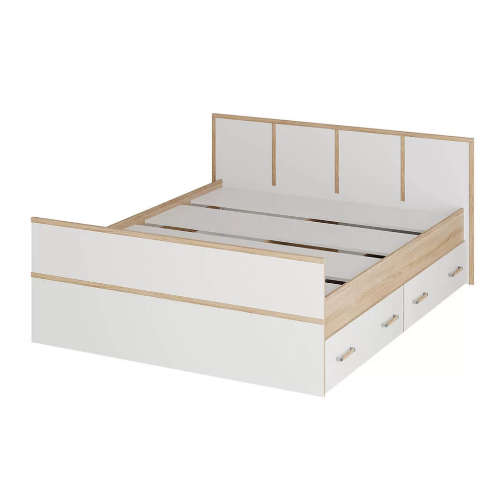 Двуспальная кровать Сакура выполнена из ЛДСП высокого качества в контрастных цветах сонома и белый.