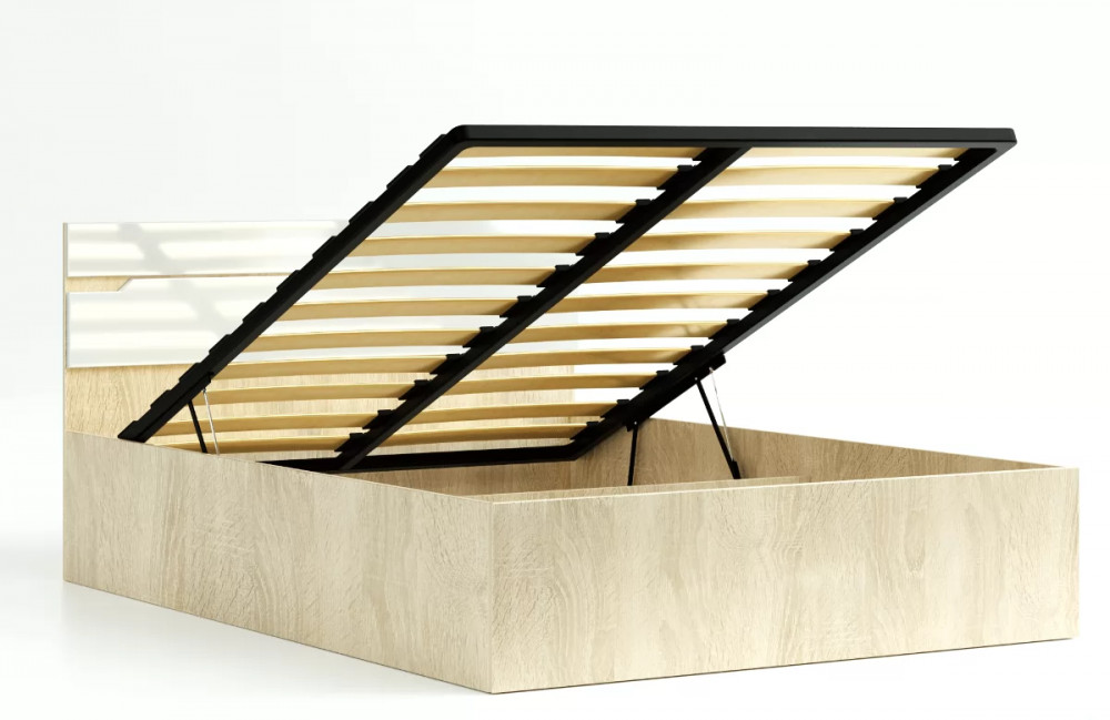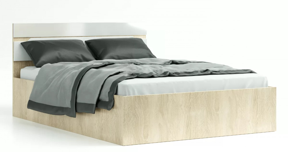 Кровать ТРИО 1600 с ортопедическим основанием Дуб сонома светлый/Белый глянец в Тюмени