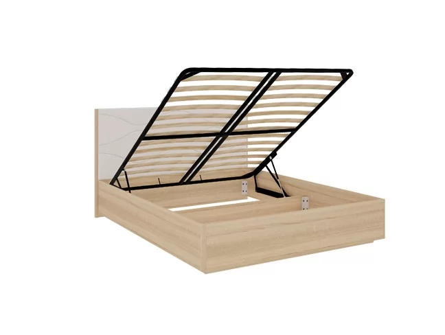 Состоит из каркаса из ЛДСП, мягкого изголовья из экокожи, подъемного ортопедического основания. Матрас и настил приобретаются отдельно.