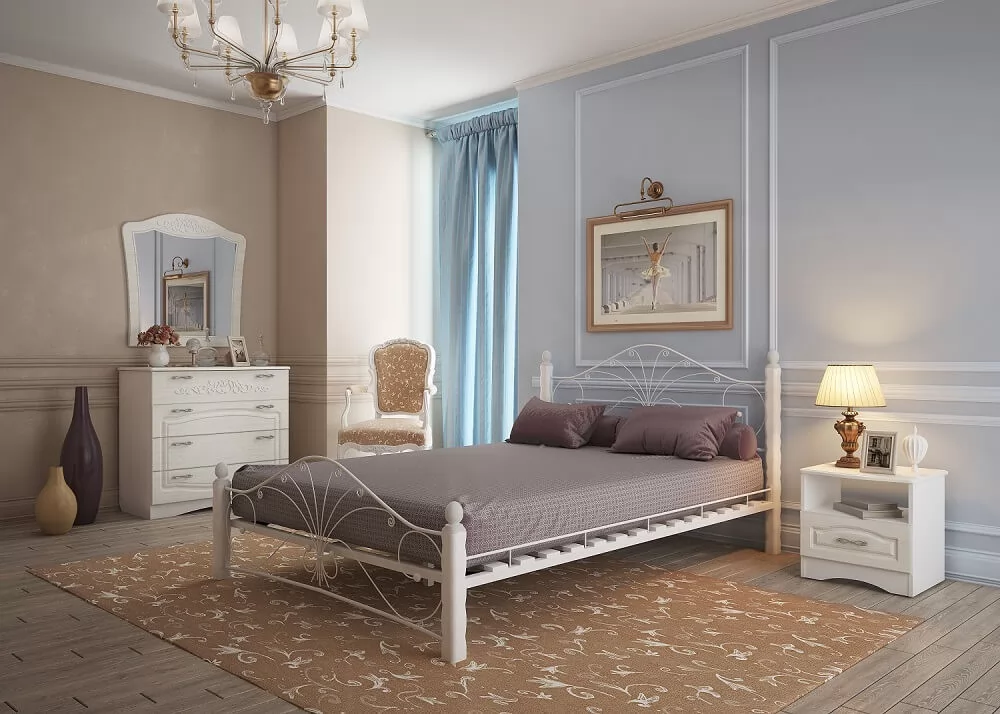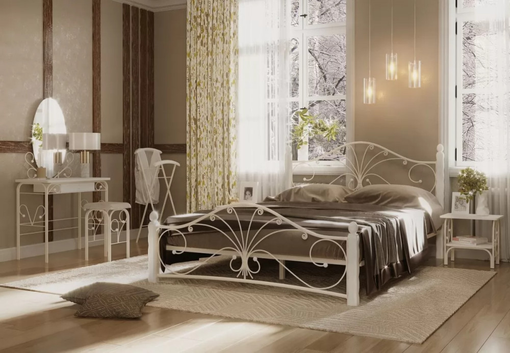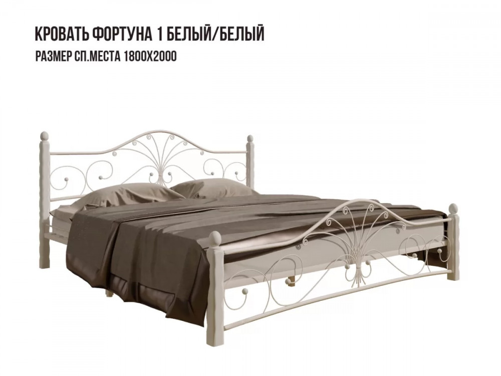 Кровать "Фортуна 1" КМД 2.01 КРЕМОВО-БЕЛАЯ (1800*2000) (ножки-белые) с коваными элементами в Тюмени