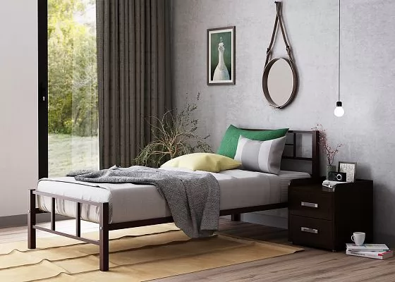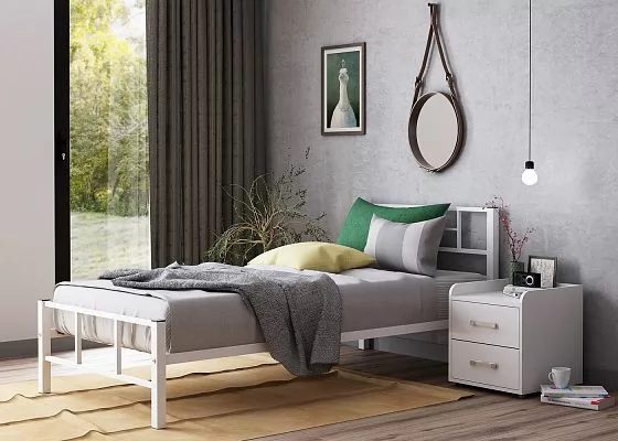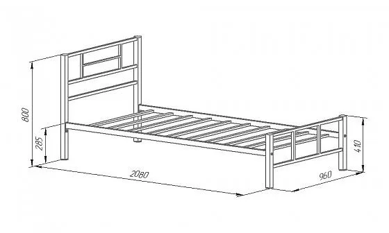 Практичная металлическая кровать "Кадис". Спальное место размером 900*1900 мм. Нагрузка на спальное место: 180 кг.