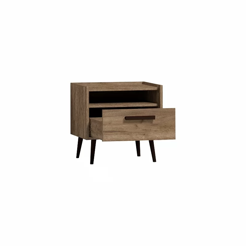 Элегантная и легкая тумба прикроватная 41 с 1-им выдвижным ящиком станет прекрасным дополнением к кровати коллекции Nature. Аккуратные черные опоры и ручки тумбы прикроватной выполнены из массива дерева. Они подчеркнут естественную красоту древесного декора и добавят мебели роскоши и «характера».