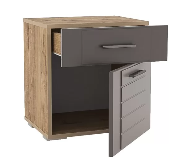 Тумба Livorno НМ 013.62 не перегрузит и сделает функциональной прикроватную зону. На поверхности модуля поместится небольшая лампа точечного света или предметы декора. В выдвижном ящике и нижнем отделении с дверцей будет удобно хранить личные вещи, которые хочется иметь под рукой.