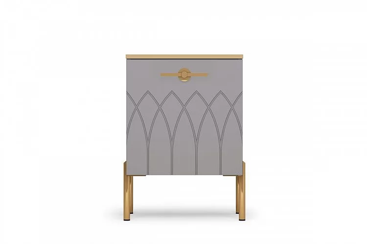 3. МДФ фасады изделия оформлены пленкой ПВХ с бархатной поверхностью soft touch. А в качестве яркого декора применяется фрезеровка фасадов, золотая кромка и металлическая фурнитура в цвете золото.