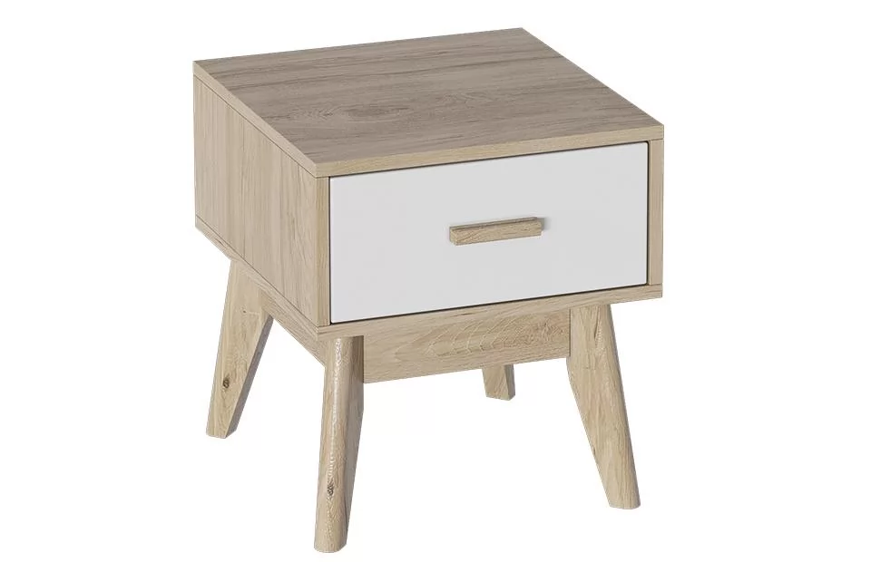 Тумба с вкладными боками, между которыми расположен ящик. Тумба стоит на четырёх опорах, которые выполнены из массива березы.