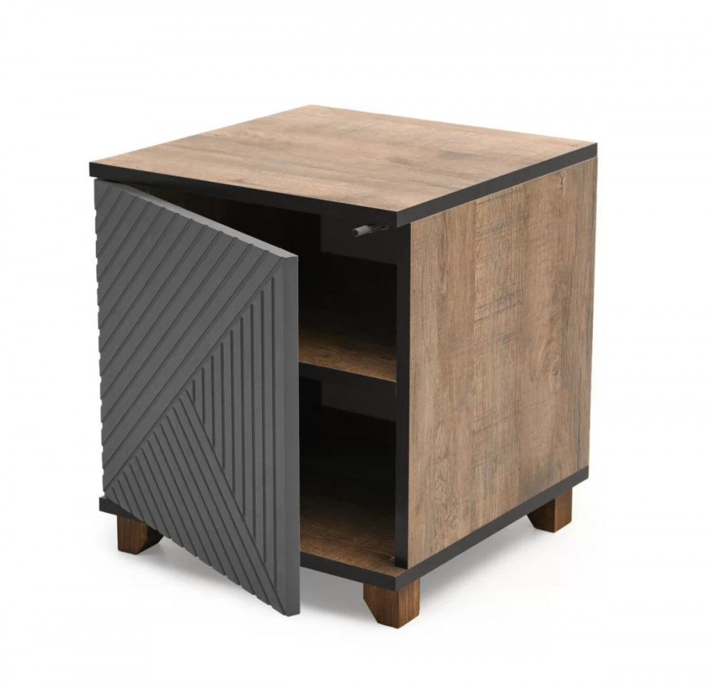 Прикроватная тумба — это неотъемлемая часть спальни. Она предназначена для хранения личных вещей и предметов необходимых перед сном и во время отдыха. Данная модель имеет закрытую створкой нишу с двумя полками. Створка закреплена на петли с доводчиками для плавности хода и бесшумного закрывания. Для удобного открывания тумба оборудована механизмом «push-to-open». Ножки выполнены из массива дерева с регуляцией по высоте. Подобрать изделие для нужной обстановки спальни поможет комбинирование цветов фасада и корпуса.