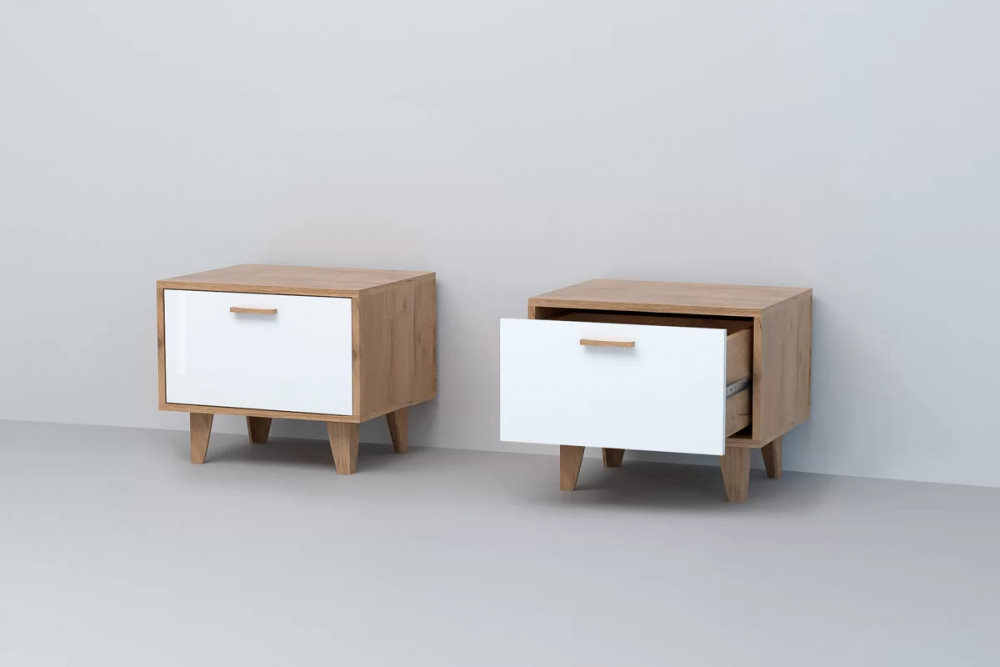 Тумба прикроватная Эго Т-5, дуб крафт золотой/белый глянец на ножках в Тюмени