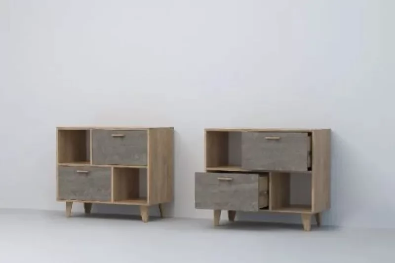 Тумба Эго Т-1, 2 ящика, дуб крафт золотой/камень темный, на ножках Диал в Тюмени
