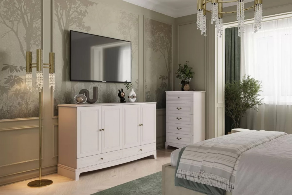 - Комод 4 двери + 2 ящика Лорето Персидский жемчуг/Лак Льняной