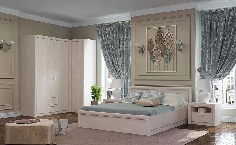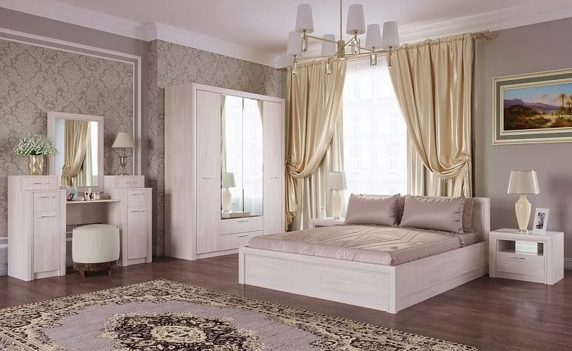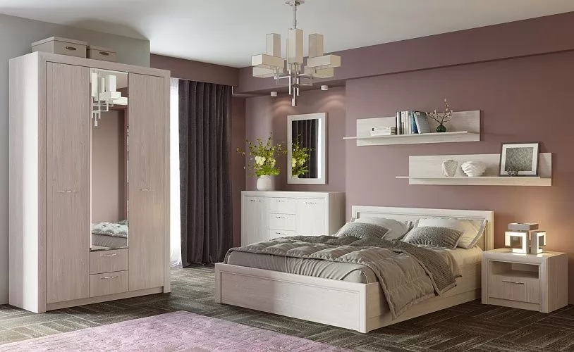 ОКТАВА СПАЛЬНЯ № ЯАС-1 (3С2Я, 2С4Я, зеркало, кровать, тумба прикроватная, полка навесная 1490), ясень анкор светлый в Тюмени