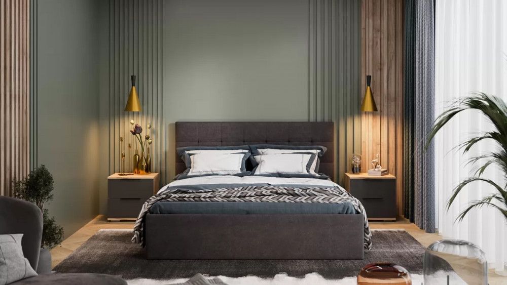 Спальный гарнитур «Джоли» стандартный Дуб Крафт золотой, Графит матовый, Велюр Графит в Тюмени