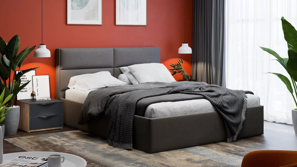 Спальный гарнитур «Глосс» стандартный без шкафа Яблоня Беллуно/Cтекло Графит матовый в Тюмени