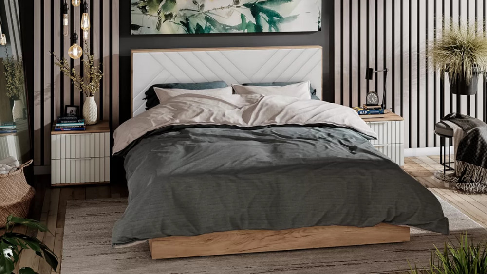Спальный гарнитур «Хилтон» стандартный Дуб Крафт золотой, Белый матовый в Тюмени