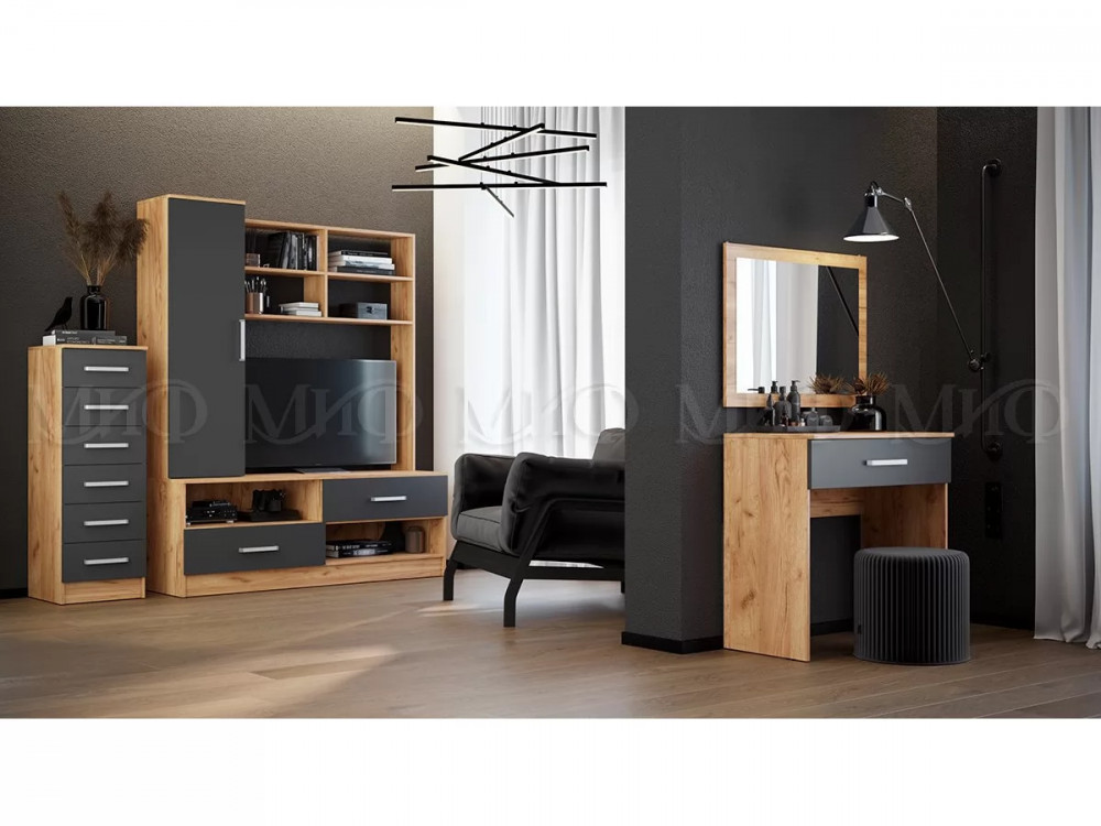 Спальный гарнитур Мартина ЛДСП Графит, Дуб крафт в Тюмени