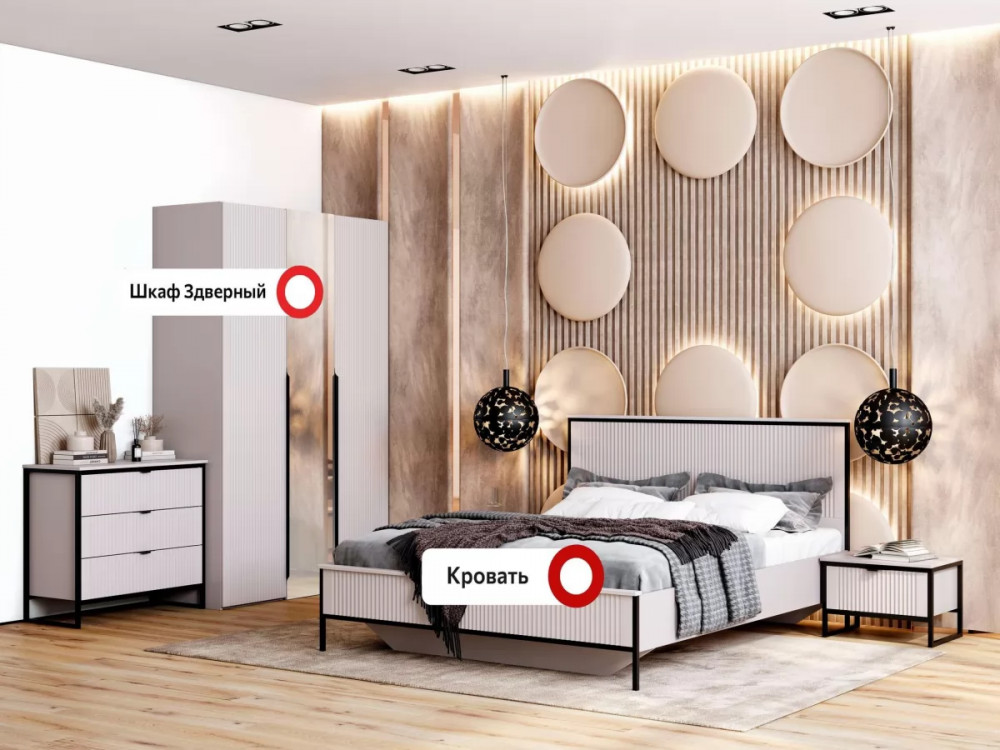 Гарнитур подходит как для просторных, так и для небольших спален, помогая эффективно использовать пространство и создавать уютное место для отдыха и сна.