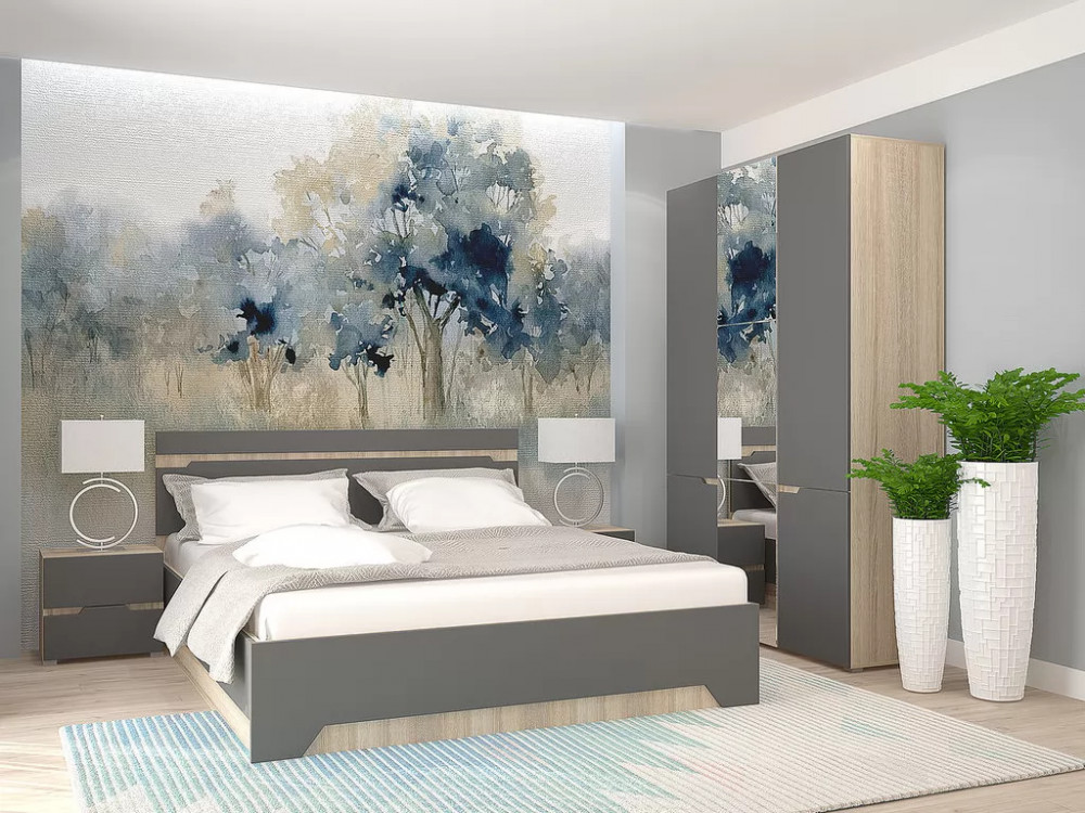 Спальный гарнитур с 3-х створчатым шкафом Анталия Сонома-Графит софт в Тюмени