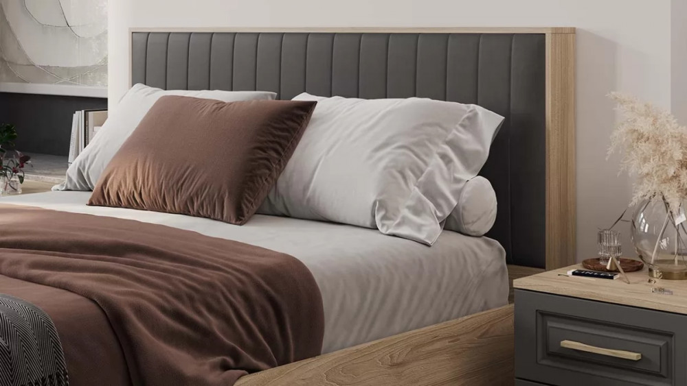 Спальный гарнитур «Сэнди» стандартный №2 Вяз благородный, Серый вулкан, Велюр Графит в Тюмени