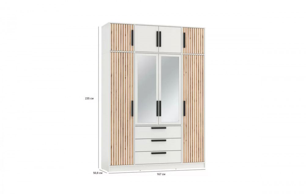 Шкаф для одежды 83.07 Вегас (4-х дв.) с зеркалом (белый / ДВПО: белый) 1 шт.