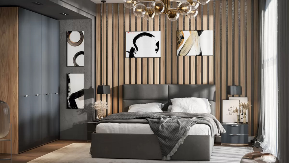 Спальня «Глосс» Яблоня Беллуно/Cтекло Графит матовый в Тюмени