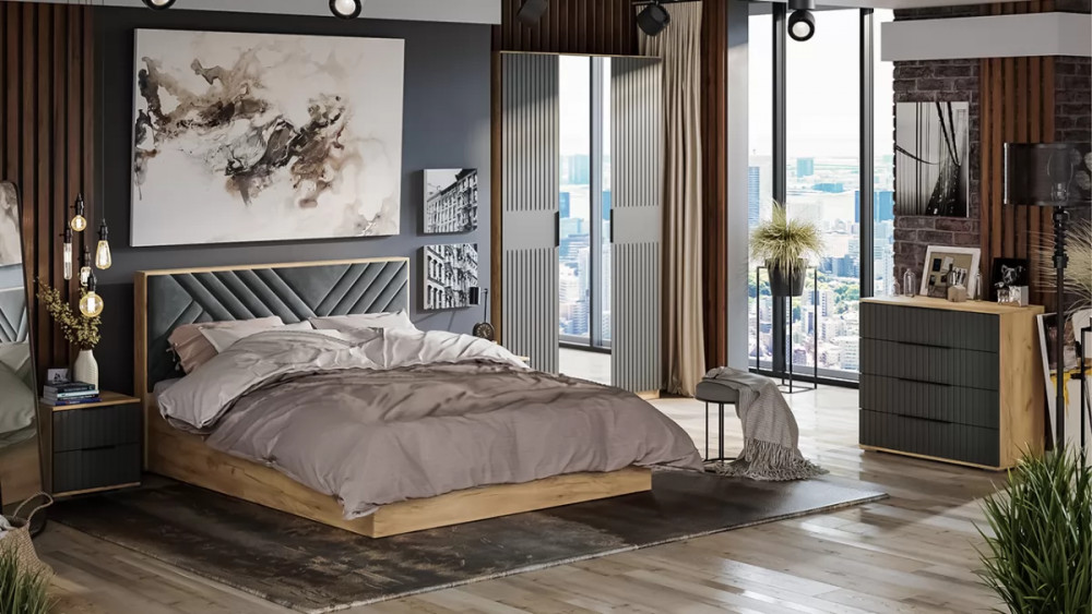 Спальня «Хилтон» Дуб Крафт золотой, Графит матовый в Тюмени