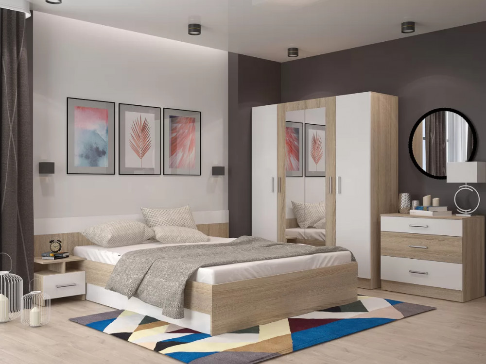 Спальня Леси Сонома-Белый с четырехстворчатым шкафом в Тюмени