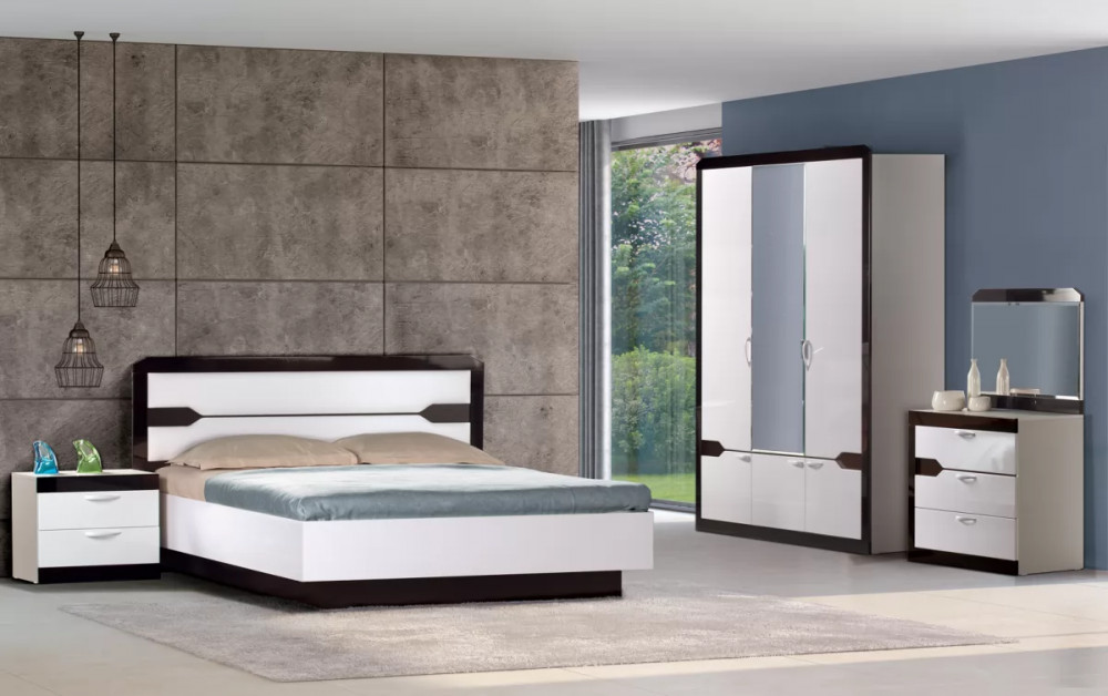 Спальня «Ронда» – модульная мебель в современном стиле, выполненная в виде горки. Благодаря сочетанию 2-х контрастных декоров – белого и венге с глянцевыми и матовыми поверхностями, выглядит эффектно и стильно. Завершают внешний облик белые глянцевые ручки итальянского производства.