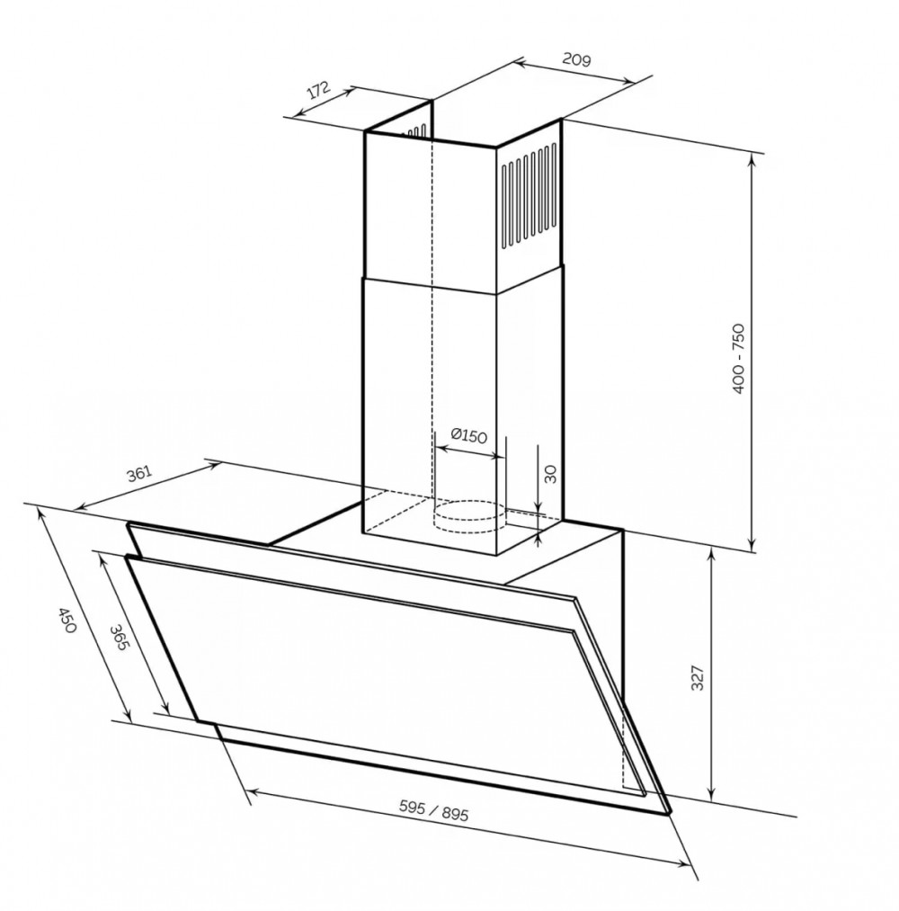 Кухонная вытяжка полновстраиваемая Lex HYPER 900 IX нержавеющая сталь