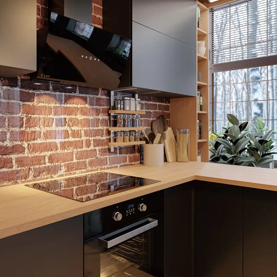 Кухонный угловой гарнитур арт.1 ЛОФТ, 2400x1200 мм, Бетон тёмный/Рустик соломенный