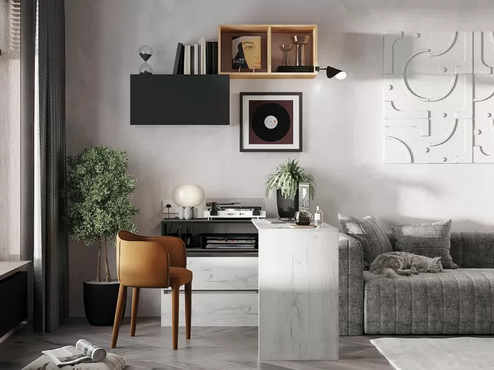 Комод с приставным столом Кент-1 Секция-5-6 Дуб Крафт Белый/Антрацит