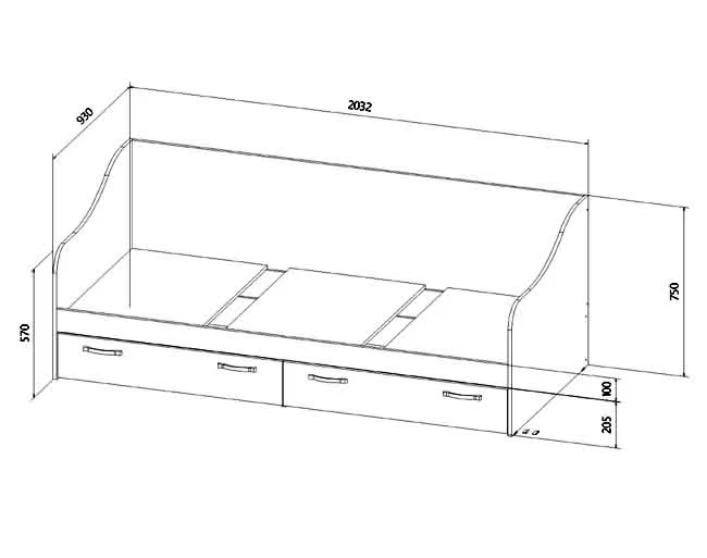 Габариты 2032(Ш) х 930(Г) х 750(В) мм.