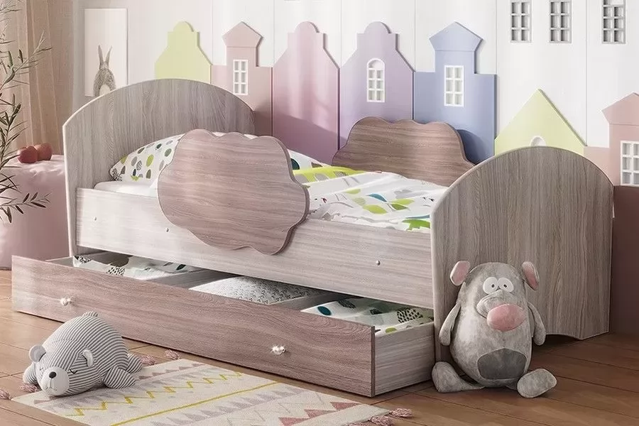 Кровать "Тучка" - яркая стильная кровать для ребенка. Бортики в форме облачка с двух сторон кровати обезопасят малыша от падения. Благодаря большому выбору цветов, можно подобрать кровать к любому интерьеру.