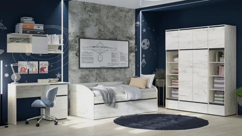 ГРЕТТА Шкаф 4С1Я (ш900*г507*в2120мм), ЛДСП дуб крафт белый-антрацит