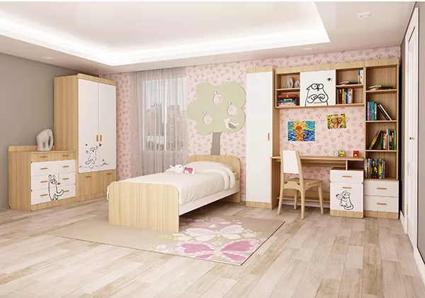 Набор детской мебели «Порто» №5 Белый Жемчуг, Яблоня Беллуно, Белый софт