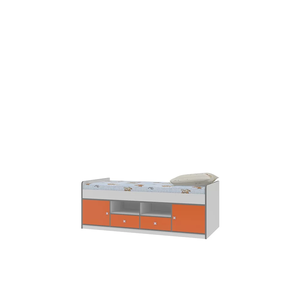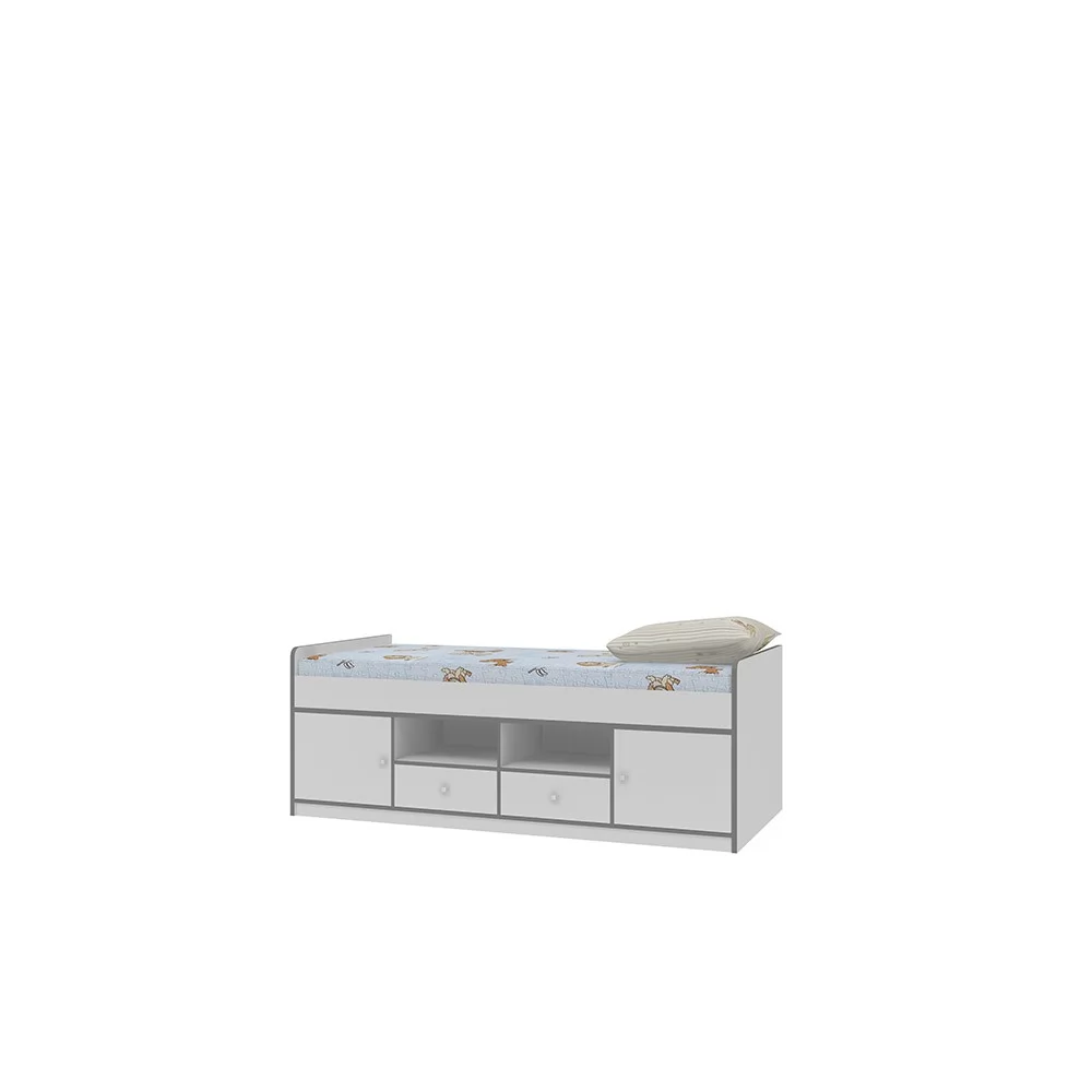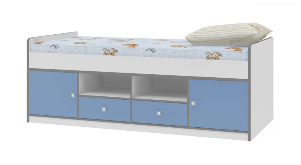 Кровать-чердак 19.1 из коллекции "Дельта-Сильвер" представляет собой комплексное решение для сна и хранения. Кровать имеет большое спальное место размером 90*200 см. Под спальной зоной располагаются места для хранения вещей: два отделения с дверцами, два выдвижных ящика и две открытые ниши.