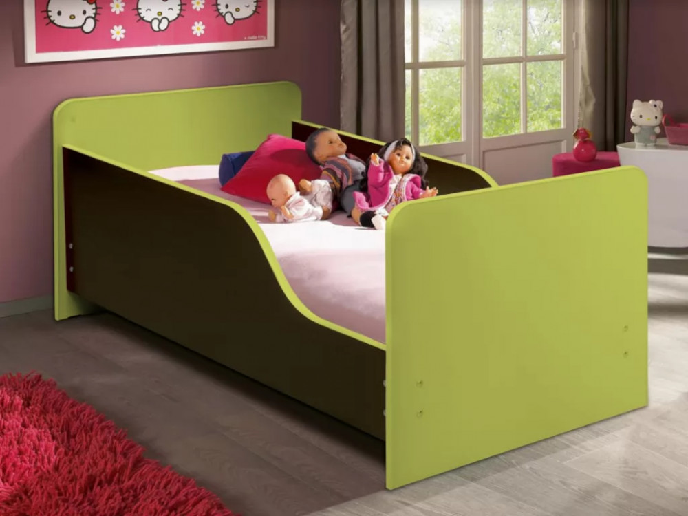 Кровать детская с бортом Малышка №4 дуб млечный с фотопечатью