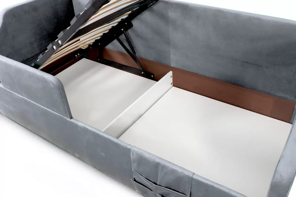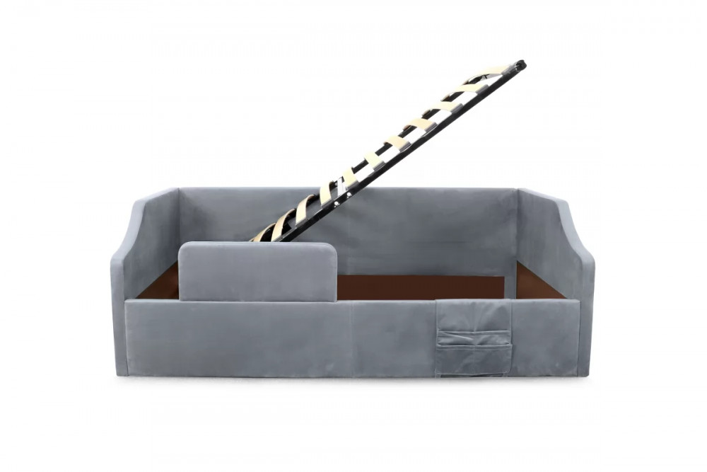 Кровать “Дрим” - это идеальное решение для детской комнаты. Мягкая обивка из приятного на ощупь, гипоаллергенного велюра обеспечивает комфорт и уют во время сна.