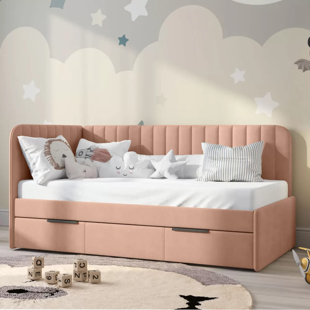 Детская кровать ELLA с вертикальной строчкой и выдвижным ящиком сочетает в себе функциональность, стиль, удобство и комфорт, делая ее отличным выбором для детской комнаты.