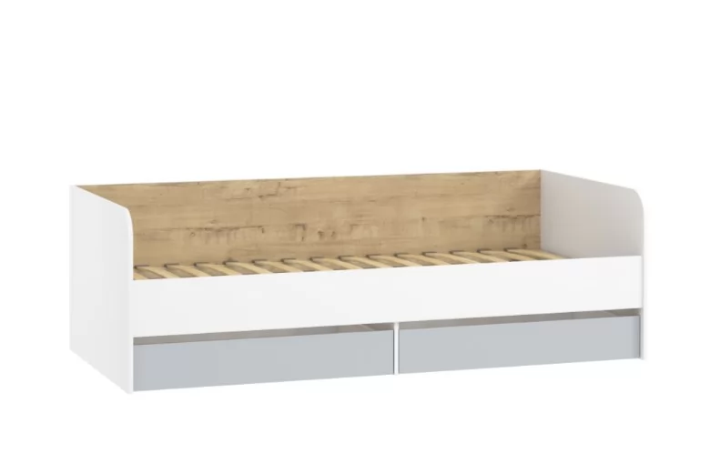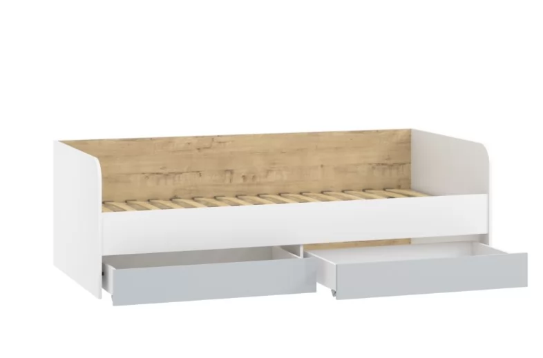 Односпальная кровать подходит для детской мальчиков и девочек в современном, скандинавском и стиле лофт. В кровати предусмотрены ящики для хранения постельного белья или игрушек. Натуральный материал ламелей не вызывает аллергии и безопасен для здоровья. Изогнутая форма ламелей придает основанию спального места большую прочность и дополняет ортопедические свойства матраса.