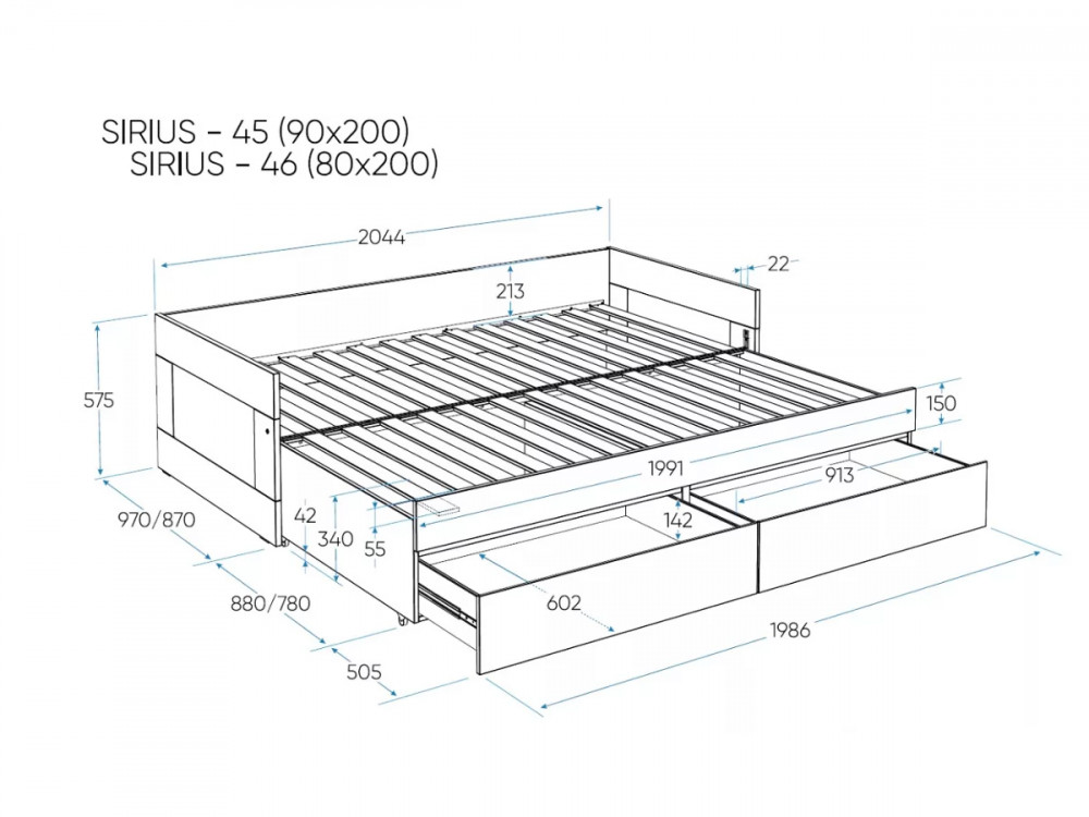 Кровать раздвижная с ящиками 80х200 Сириус Дуб Сонома