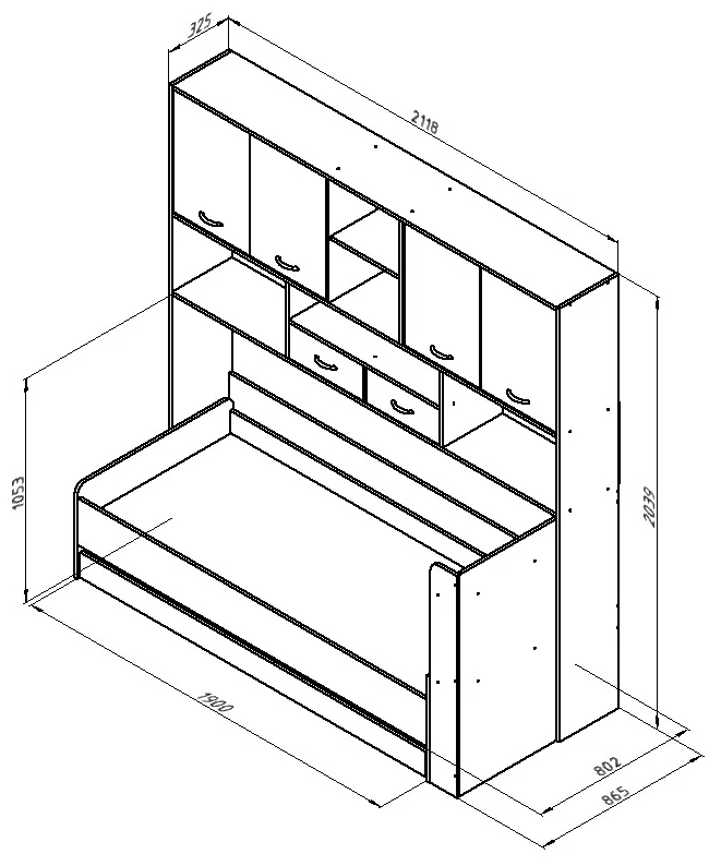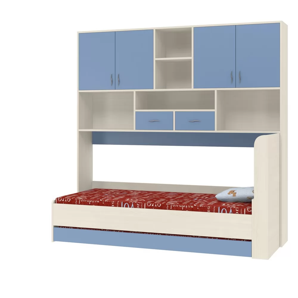 Кровать с антресолью "Дельта-21.03" - это удобный и функциональный комплекс детской мебели для одного или двух детей. Кровать включает в себя спальное место размером 80*190 см. Над спальным местом располагаются 5 открытых ниш и 2 закрытых полки внутри 2 двухдверных шкафчиков, которые можно использовать для хранения книг, учебных принадлежностей и других личных вещей, а также 2 выдвижных ящика для мелких вещей. Снизу мобильное спальное место оснащено выкатным ящиком, которое может быть использовано для хранения постельного белья или для организации еще одного спального места. Изголовье кровати, оборудованное полочкой, можно установить справа или слева.