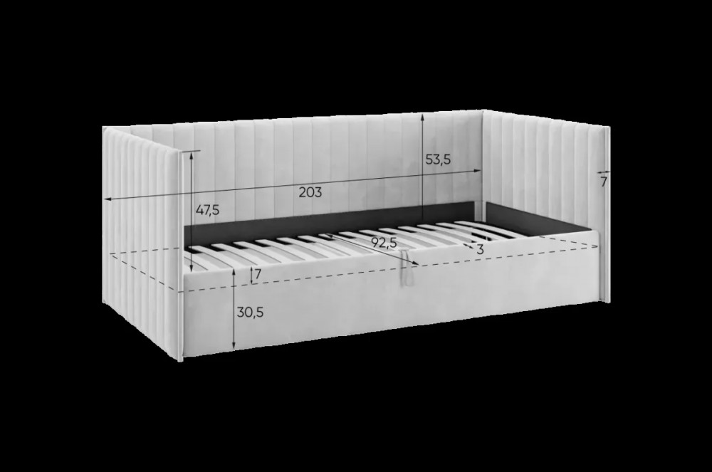 Подъемный механизм позволяет легко скрыть под матрасом дополнительное пространство для хранения вещей — идеально для хранения постельного белья, игрушек или сезонной одежды.