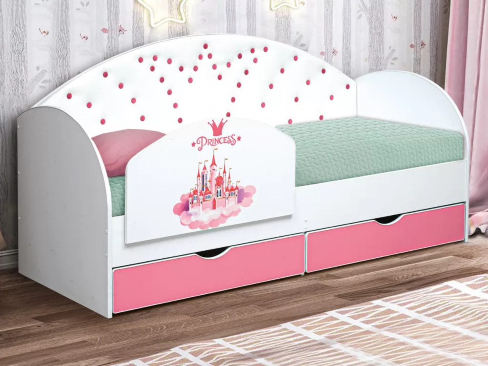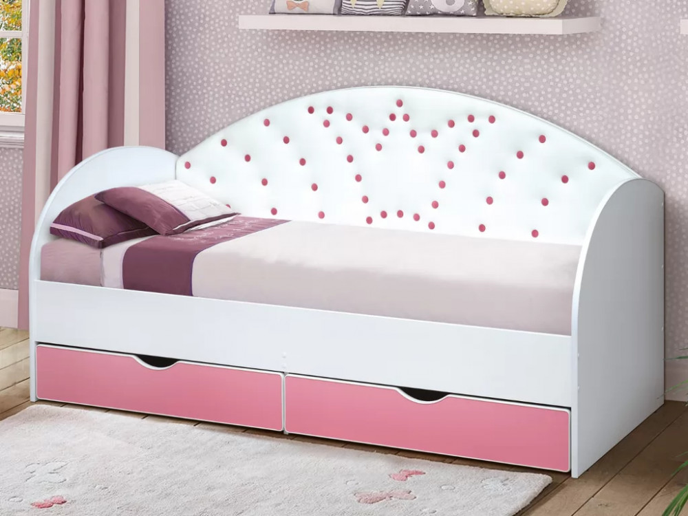 Кровать с продольной мягкой спинкой Корона 4 без бортика белая