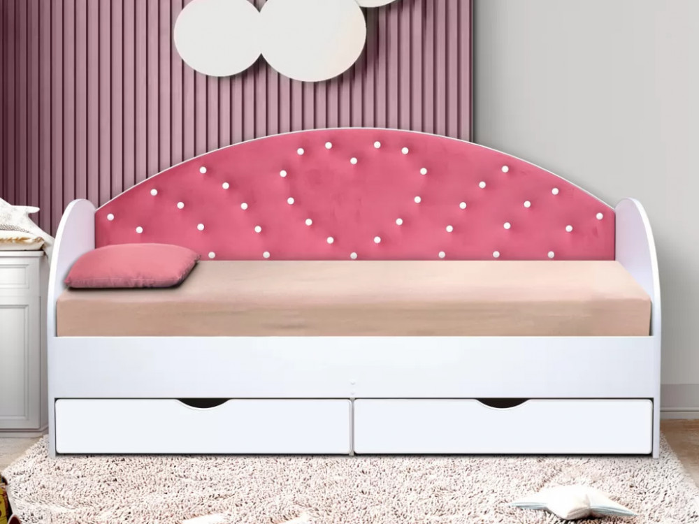 Кровать с продольной мягкой спинкой Сердце 1 без бортика белая
