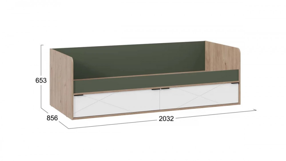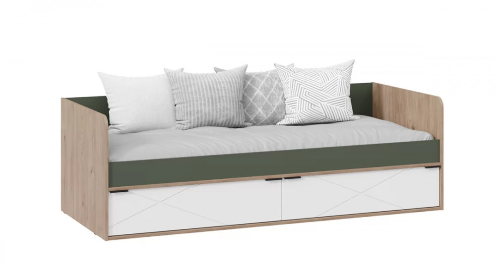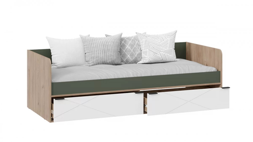 Кровать (с ящиками) «Лео» Гикори джексон/Белый матовый/Дымчатый зеленый