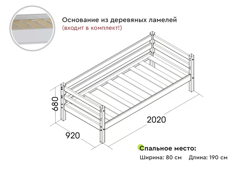 Размер спального места: 800х1900 мм