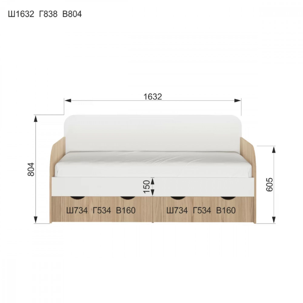 Кровать-тахта 1600*800 Кот №800.4 (туя светлая/белый) с комплектом подушек