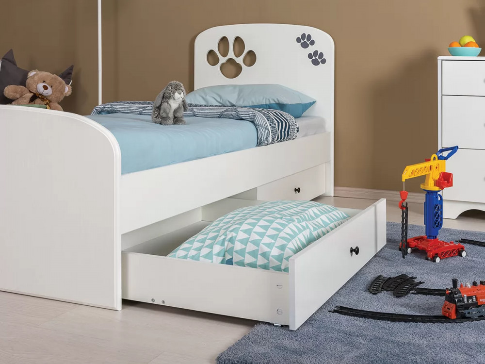 Кровать "Томас" №11.26 - изящное решение для детской спальни, подходит для любого ребенка, независимо от пола и возраста. Кровать с минималистичным декором в современном стиле удачно впишется в любой интерьер и поможет организовать пространство комнаты. Кровать оснащена двумя выкатными ящиками для хранения постельного белья или игрушек.