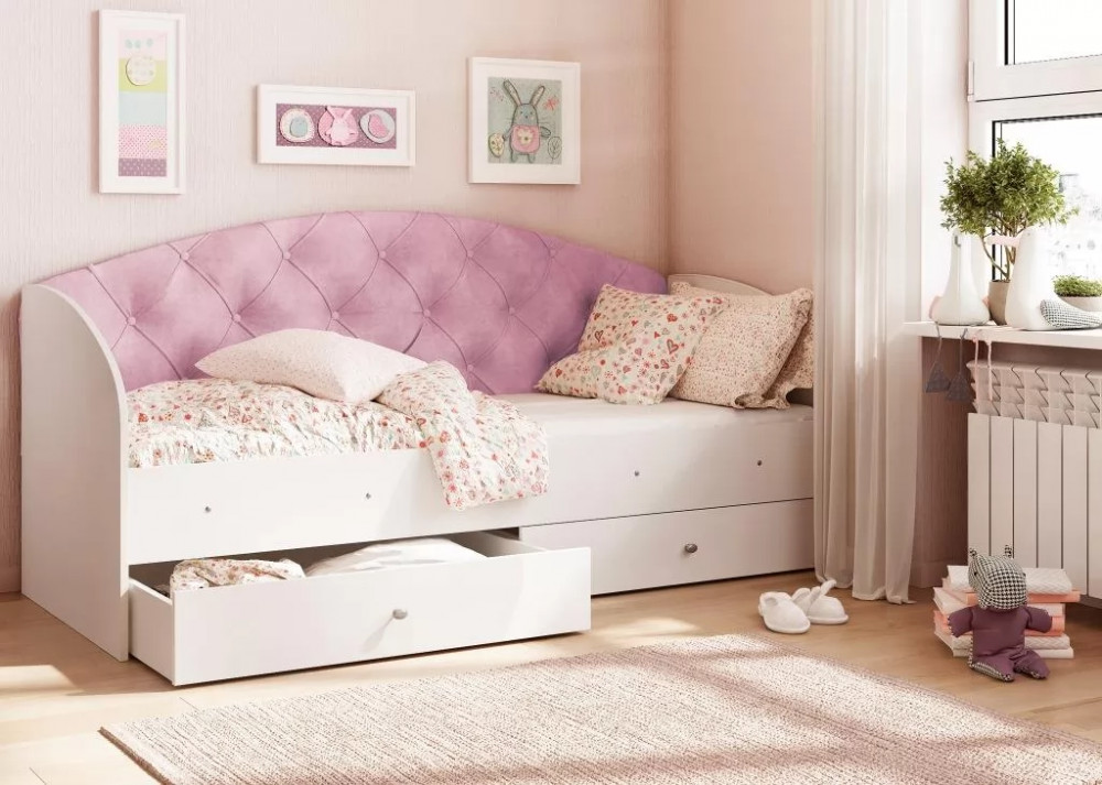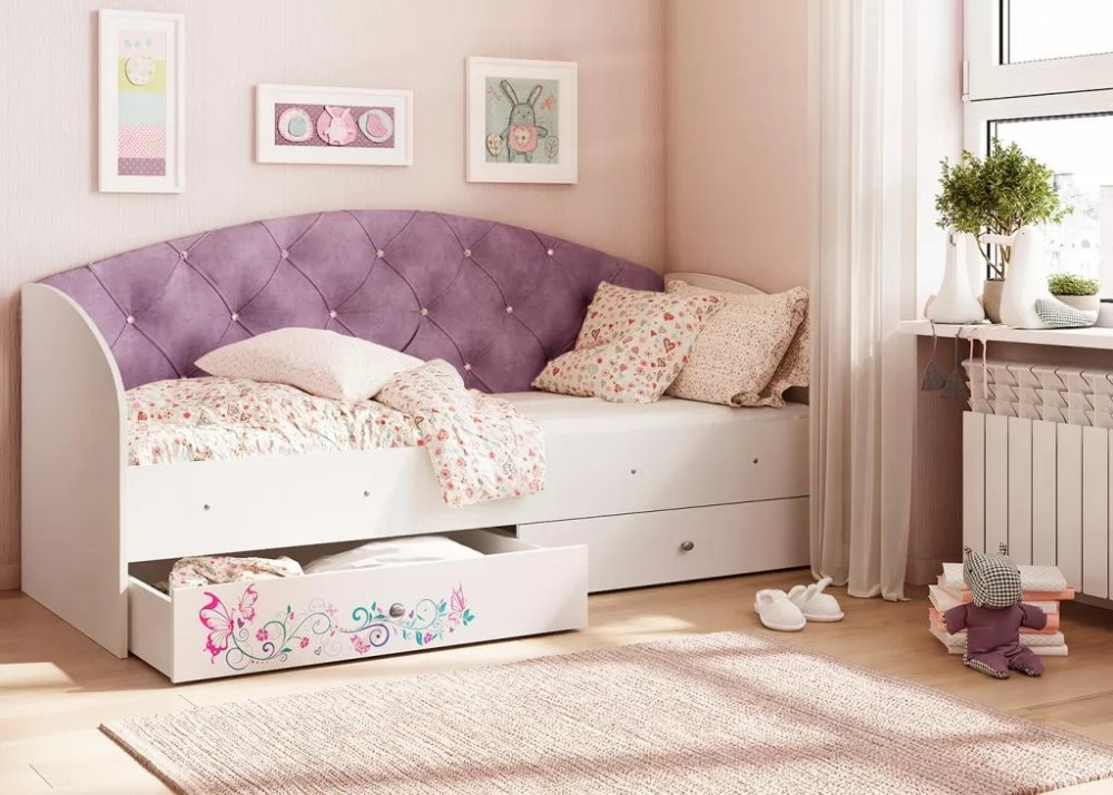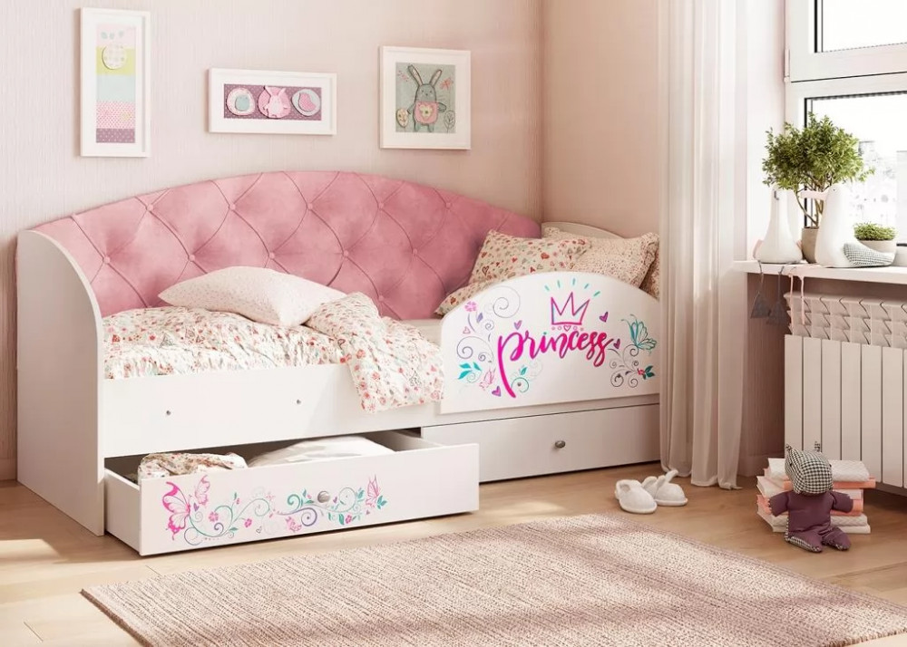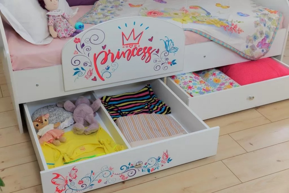 Кровать «Эльза» станет идеальным вариантом. Наличие двух выдвижных ящиков создают дополнительное место для хранения постельного белья, игрушек или вещей. Ламели в основании кровати, которые идут в комплекте, обладают ортопедическим эффектом. Спинка кровати обтянутая мягкой тканью, превосходно гармонирует с фотопечатью на фасаде ящиков.