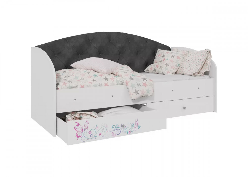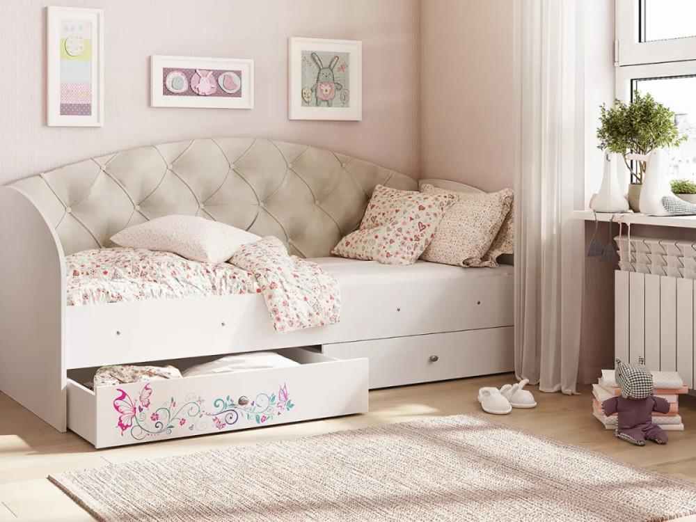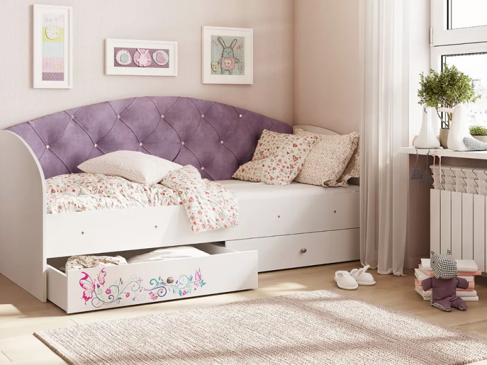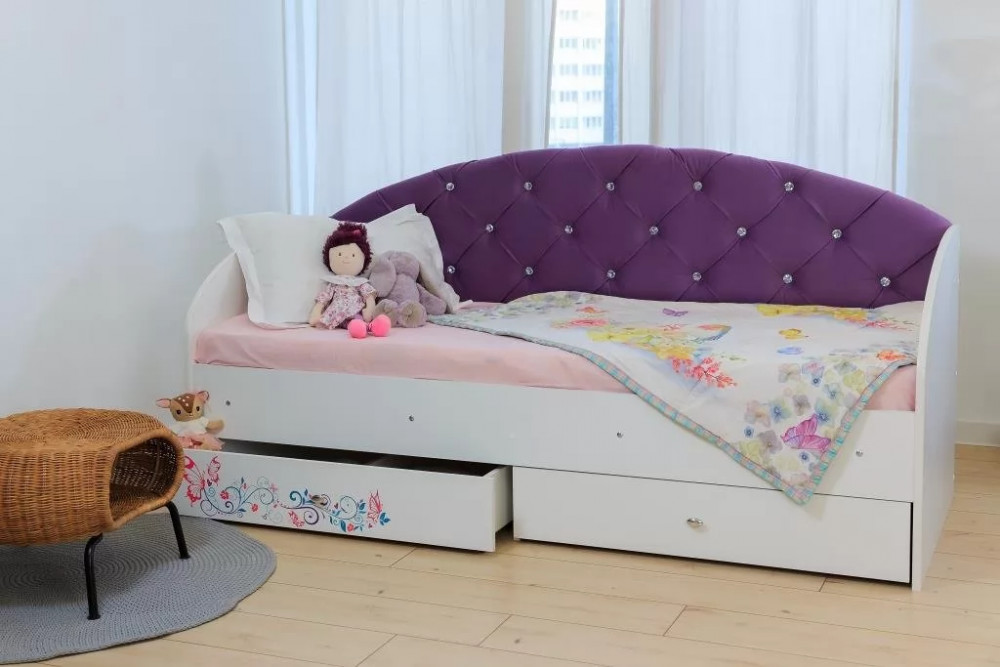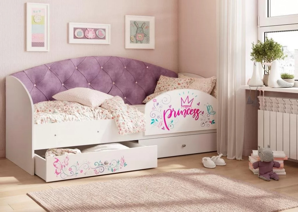 Кровать «Эльза» станет идеальным вариантом. Наличие двух выдвижных ящиков создают дополнительное место для хранения постельного белья, игрушек или вещей. Ламели в основании кровати, которые идут в комплекте, обладают ортопедическим эффектом. Спинка кровати обтянутая мягкой тканью, превосходно гармонирует с фотопечатью на фасаде ящиков.