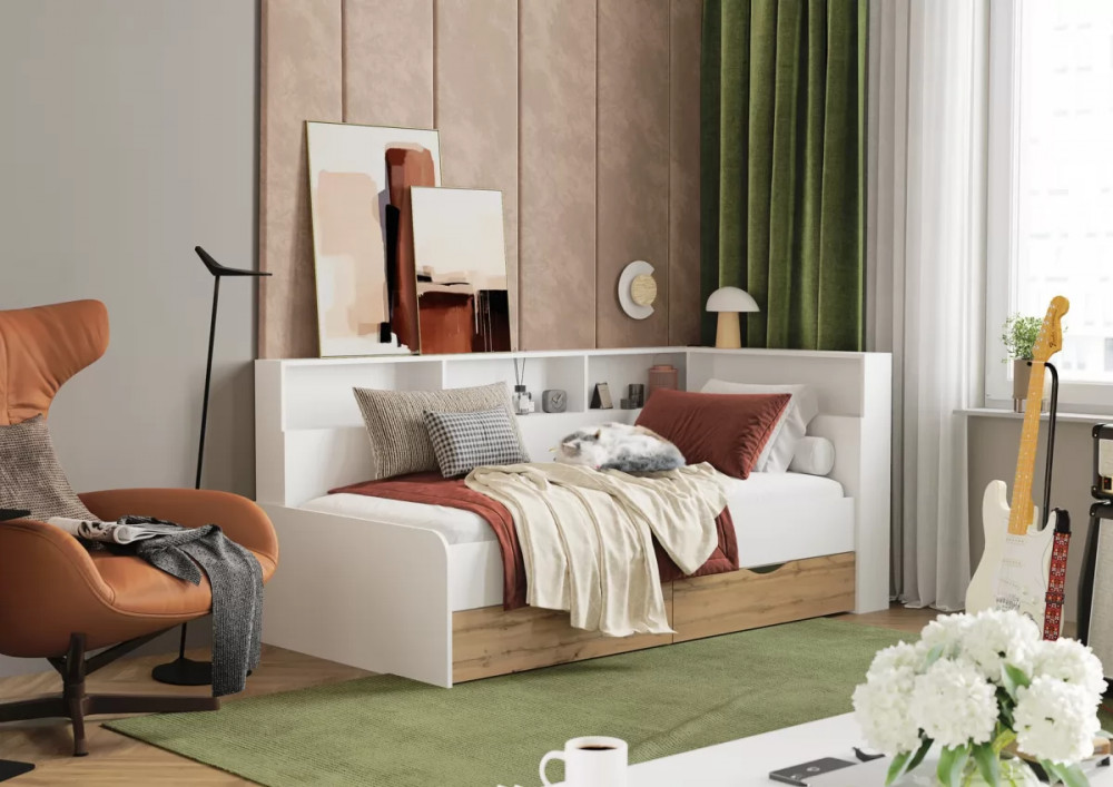 Стильная кровать «Юта» идеально подходит для организации пространства и добавления современного акцента в ваш интерьер. Ее элегантный дизайн обеспечивает сочетание функциональности и эстетики, предлагая удобство хранения. Интегрированные полки позволяют разместить любимые книги, фоторамки и коллекции, создавая яркий и персонализированный интерьер.